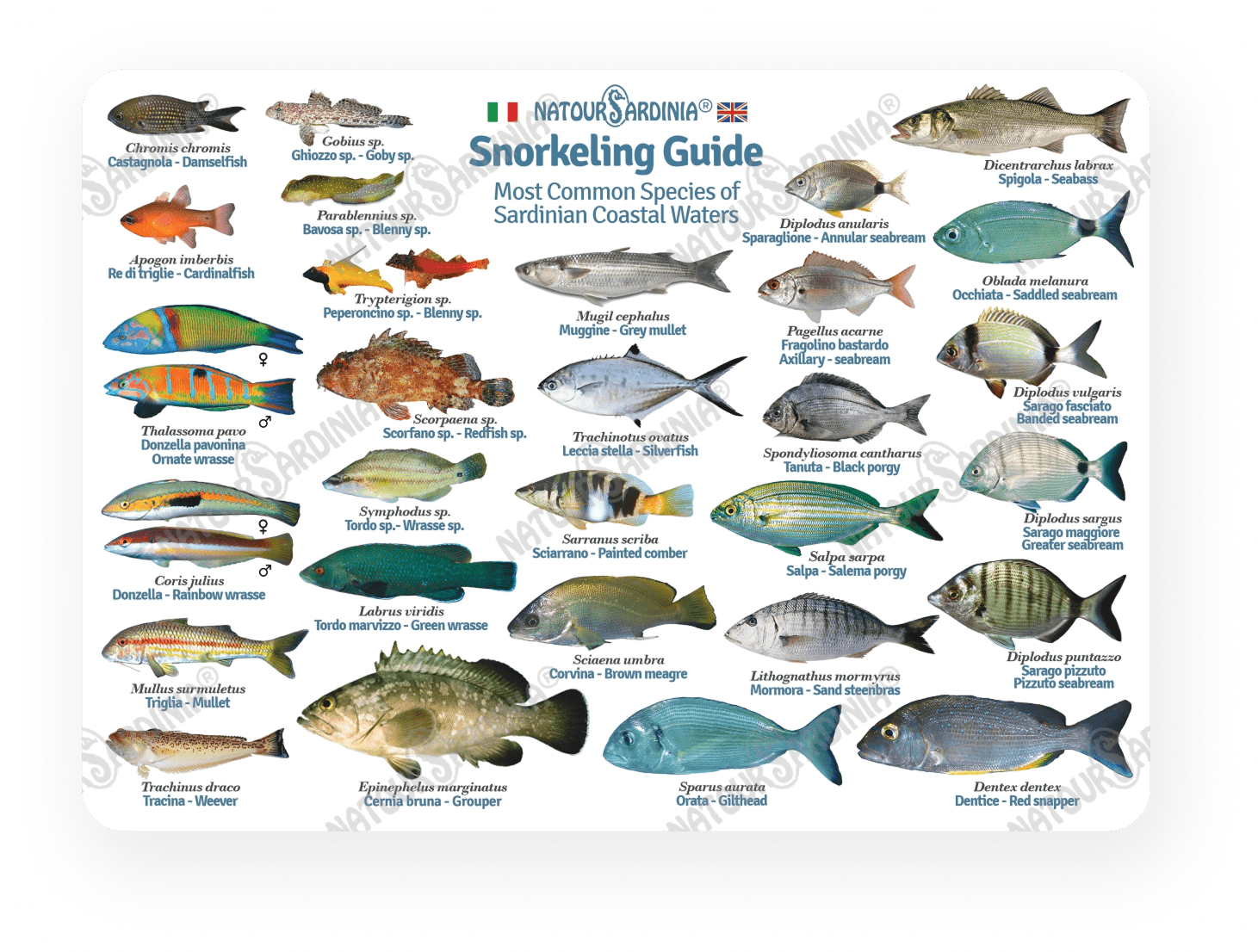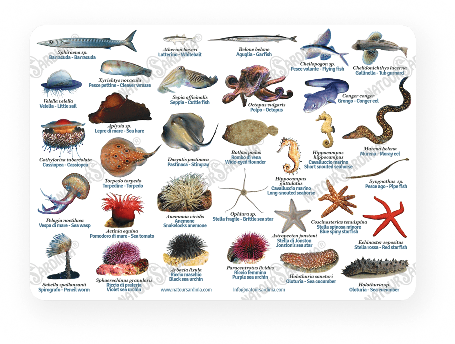 Whether you are a snorkeling enthusiast or an experienced diver, the Waterproof Marine Life ID Card is your ideal companion to identify 61 marine species of the Mediterranean Sea commonly found along the coasts of Sardinia.